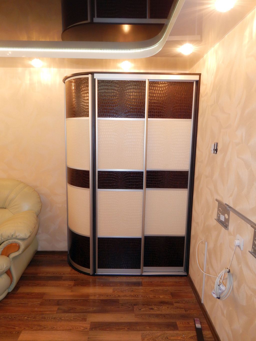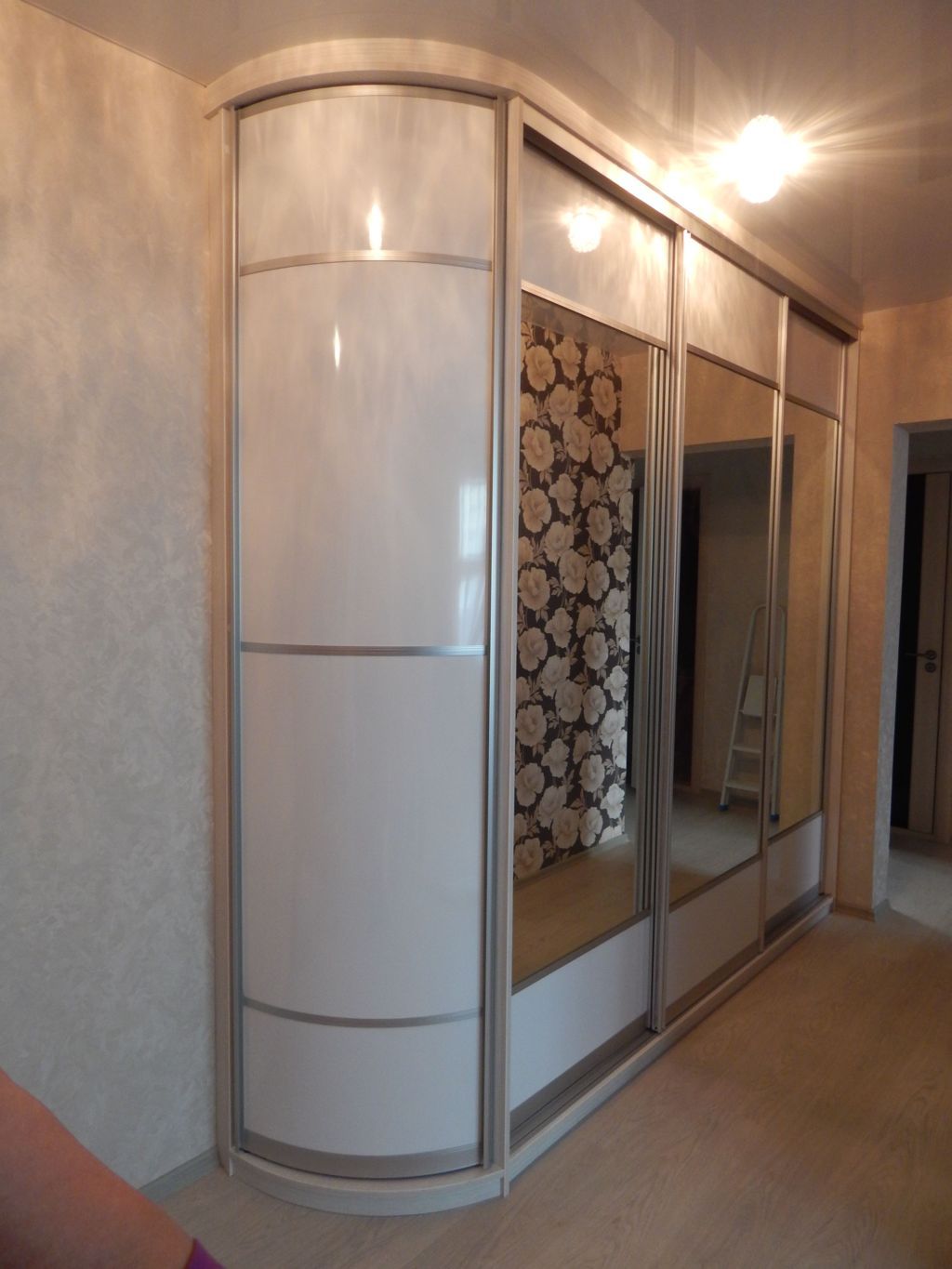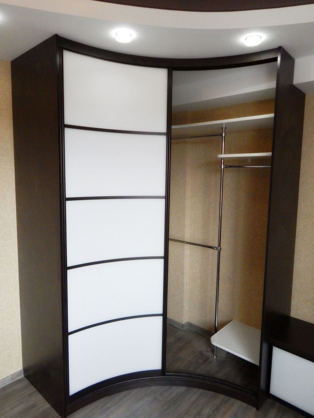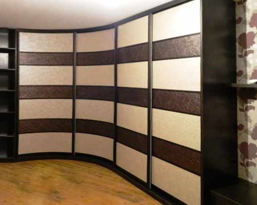 - Вогнутые. В зависимости от помещения вогнутые шкафы-купе могут иметь как обычные, так и двери купе.
