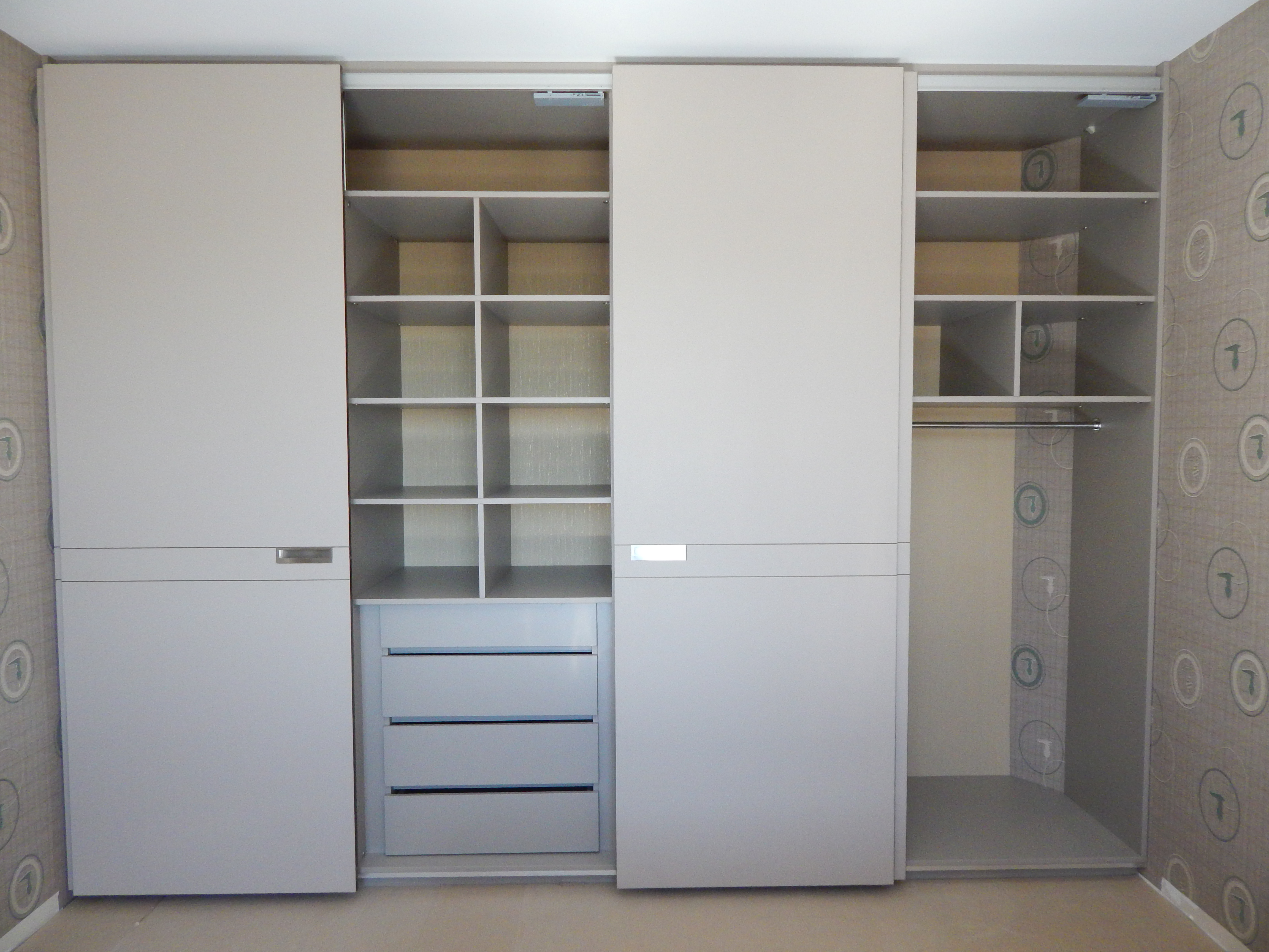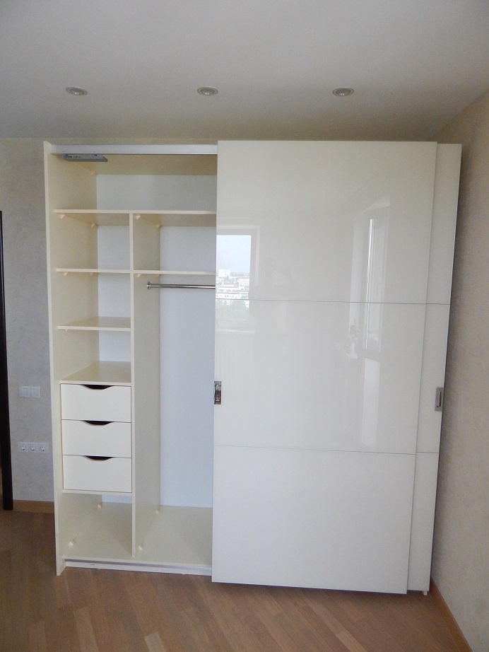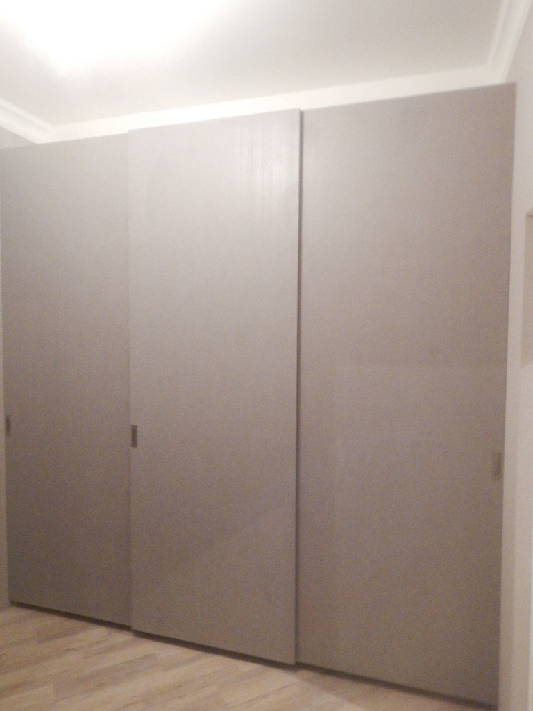 Также стоит отметить, что мы смогли решить такие важные проблемы раздвижных навесных систем Hettich, как кручение и изгибание. Используя в качестве основных материалов стекло и алюминий, мы избегаем кручения и деформации, возникающие из-за влажности и микроклимата в помещении. А чтобы решить проблему изгибания и кручения ДСП или МДФ, мы можем установить специальные выпрямители собственного производства.